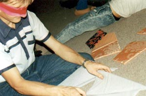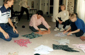 ткани разной формы - с завязанными глазами (по правилам игры его собирают